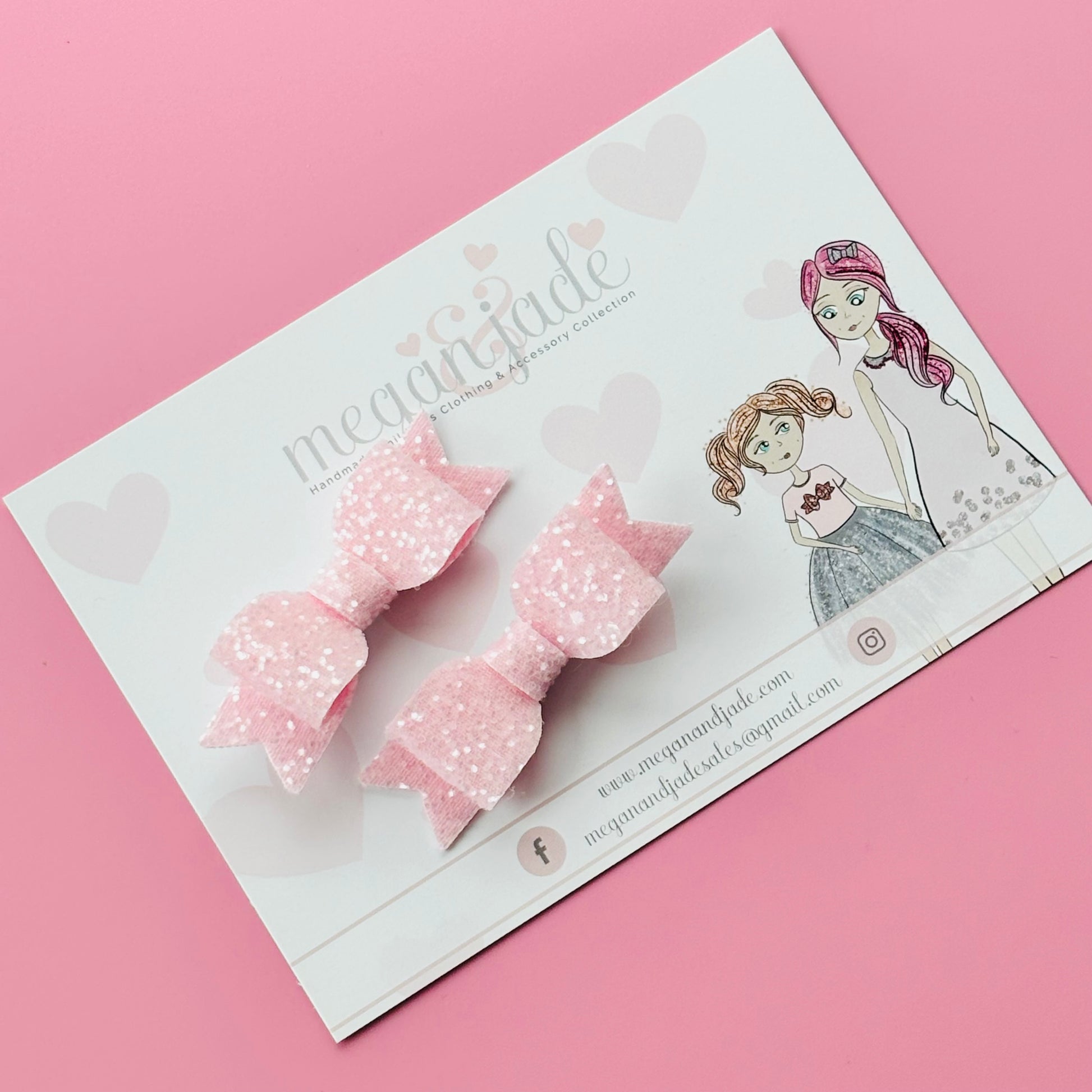 Baby Pink Powder Glitter Mini Hair Bow - Pair